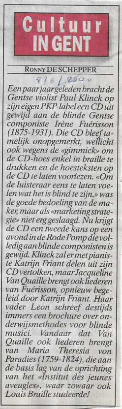 Een avond gewijd aan blinde componistes in De Rode Pomp. Op bovenstaande illustratie herkennen we Maria Theresia von Paradis.
