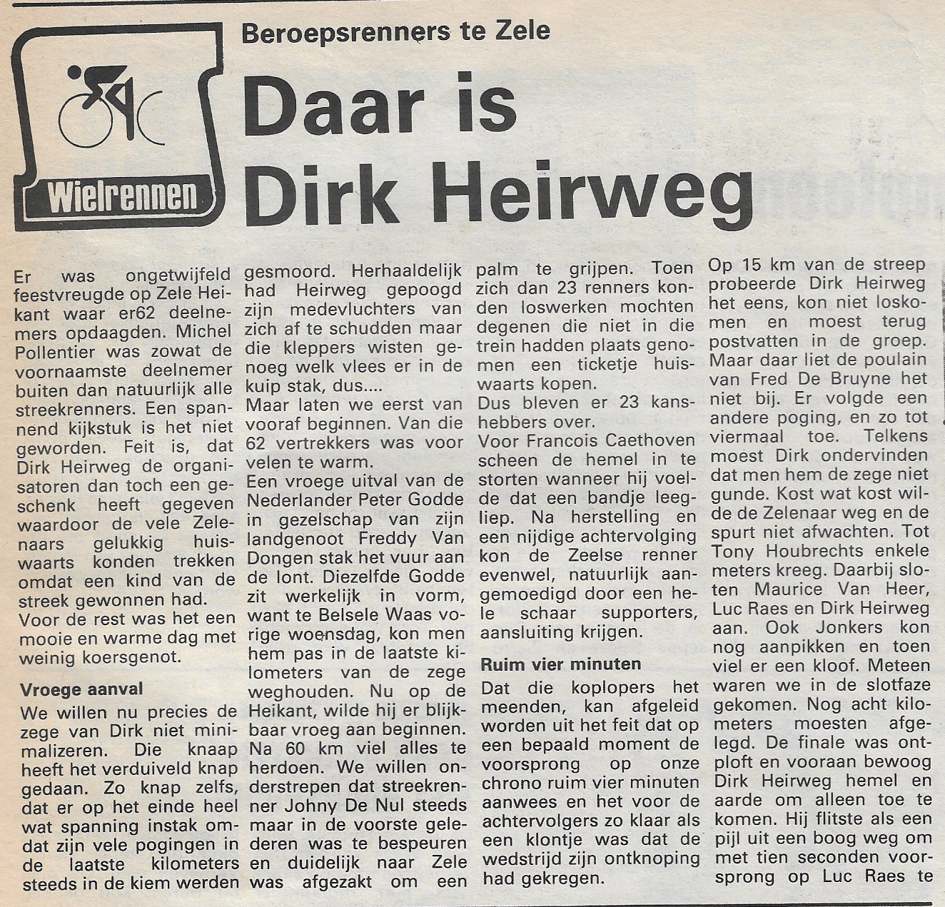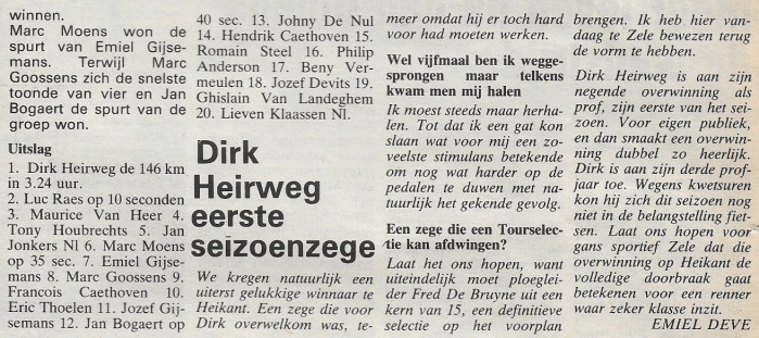 45 jaar geleden won Dirk Heirweg voor eigen volk in Zele-Heikant… Dit delen: Share op Facebook (Opent in een nieuw venster) Facebook Delen op X (Opent in een nieuw venster) X E-mail een link naar een vriend (Opent in een nieuw venster) E-mail Afdrukken (Opent in een nieuw venster) Print Meer Delen op LinkedIn (Opent in een nieuw venster) LinkedIn Delen op Pinterest (Opent in een nieuw venster) Pinterest Vind-ik-leuk Aan het laden...
