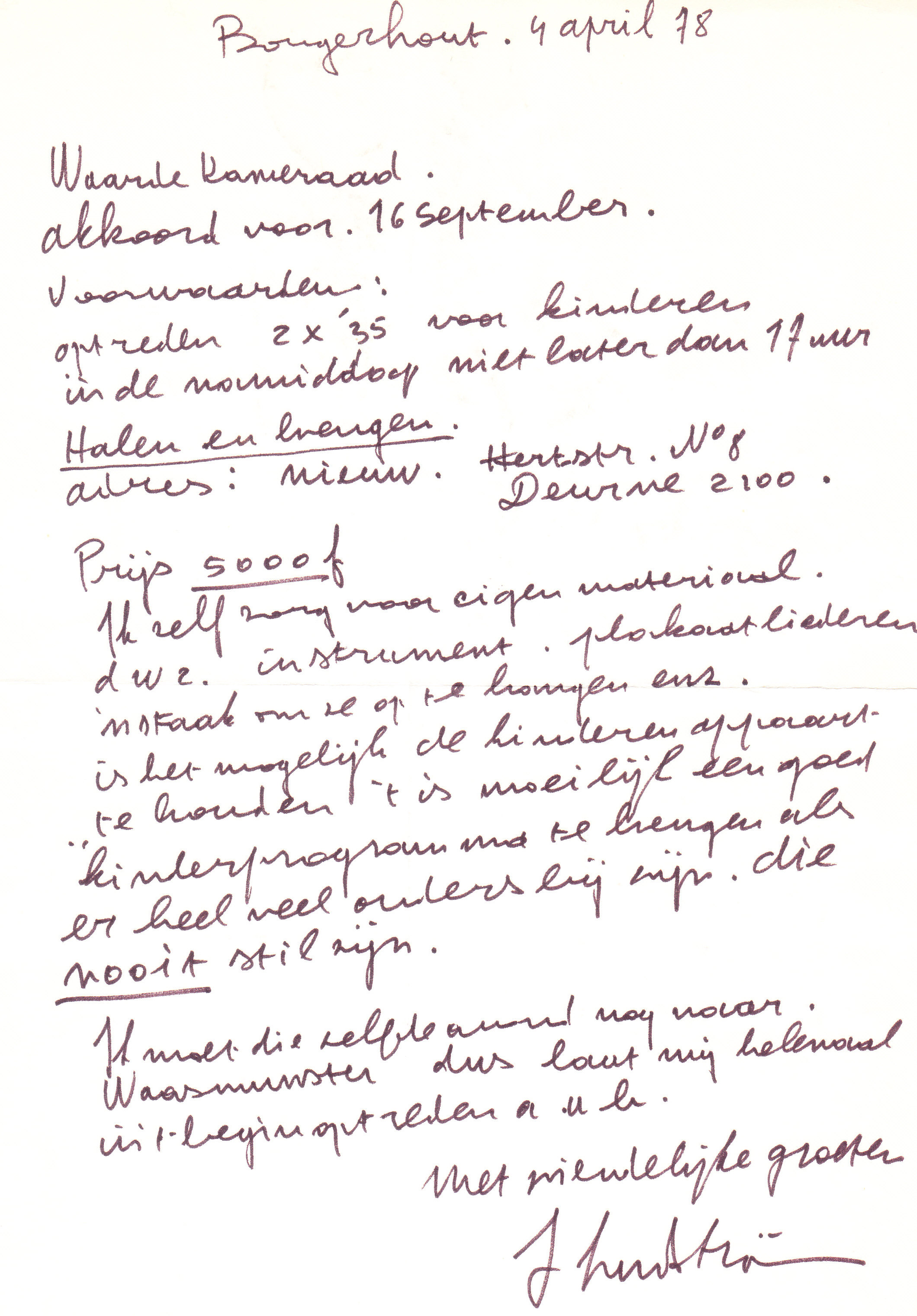 Willy Courteaux: “Ik deel je pessimistische bedenking bij de optredens van John Lundström niet. De voornaamste reden zal immers wel zijn dat onze culturele infrastructuur op de eerste plaats conservatief-katholiek is. De fameuze parochiezalen.”