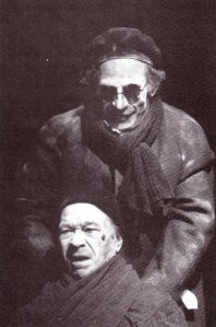 Het was immers zijn idee om met deze drie “stukjes” onder de noemer “de eenzamen” uit te pakken, zij het dat hij eerst aan zijn zoon Matthias had gedacht als tegenspeler. Uiteindelijk werd het Nand Buyl als een kreupele en Julien Schoenaerts als een blinde vioolspeler, die er maar niet in slagen met elkaar overweg te kunnen, zodat ze uiteindelijk alle twee hulpeloos achterblijven (het is kort na “Fin de partie” geschreven, inderdaad). Julien Schoenaerts slaagt er ongelukkiglijk nog altijd niet in zijn teksten te onthouden. Hij zegt dan ook terecht: “Dat is altijd mijn ongeluk geweest: ongelukkig, maar niet ongelukkig genoeg.”