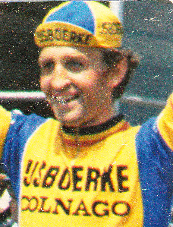 Ikzelf heb mijn koersfiets, een Motobecane, destijds in Brussel gekocht in de Lemonnierlaan, waar toen ook de redactie van De Rode Vaan was gevestigd. De handelaar was net zoals wij een trouwe bezoeker van café Au Coup d’Eclat. Hij gaf daar zo vaak tournées générales dat ik me wel verplicht voelde om mijn fiets bij hem te kopen. Maar voor het dagelijkse onderhoud was dat natuurlijk geen goede beslissing. Daarom werd Walter Godefroot (toen nog gevestigd naast de spoorweg aan het Gentse Sint-Pietersstation) mijn fietsenhandelaar.