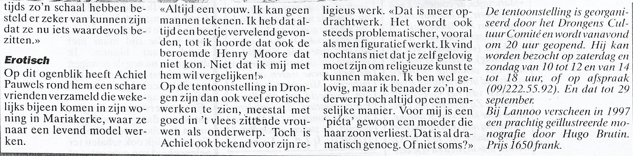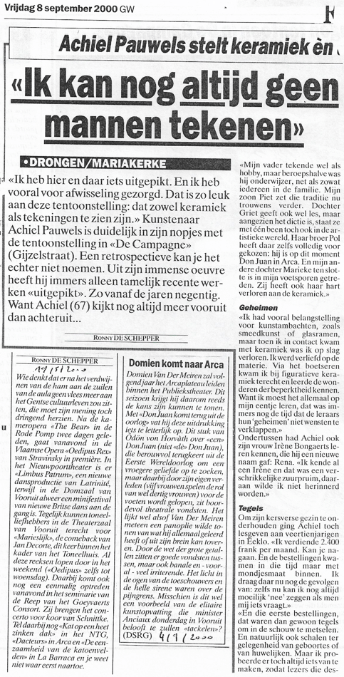 Achiel Pauwels: “Ik kan nog altijd geen mannen tekenen” Dit delen: Klik om te delen op Facebook (Opent in een nieuw venster) Facebook Klik om te delen op X (Opent in een nieuw venster) X Klik om dit te e-mailen naar een vriend (Opent in een nieuw venster) E-mail Klik om af te drukken (Opent in een nieuw venster) Print Meer Klik om op LinkedIn te delen (Opent in een nieuw venster) LinkedIn Klik om op Pinterest te delen (Opent in een nieuw venster) Pinterest Vind-ik-leuk Aan het laden...