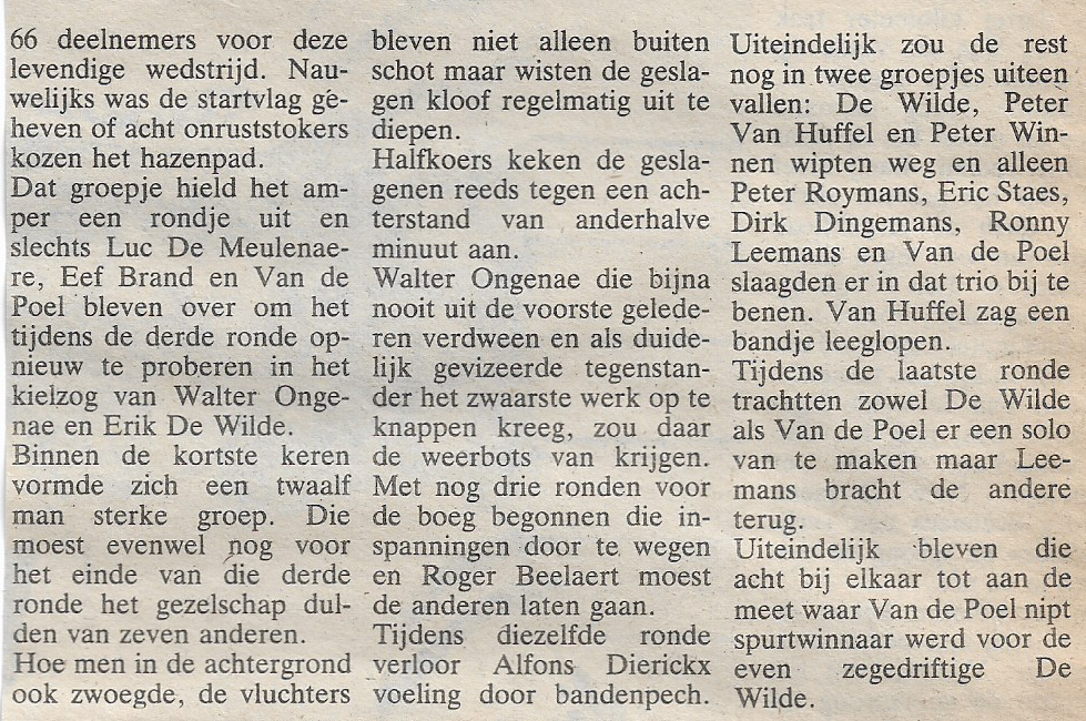 45 jaar geleden won Adrie Van der Poel (de latere vader van David en Mathieu) de amateurskoers in Zele vóór de lokale renner Eric De Wilde…