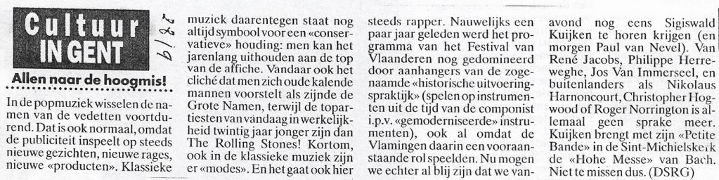 Sigiswald Kuijken en zijn Petite Bande brachten de “Hohe Messe” van Bach in de Sint-Michielskerk (foto Paul Hermans via Wikipedia)