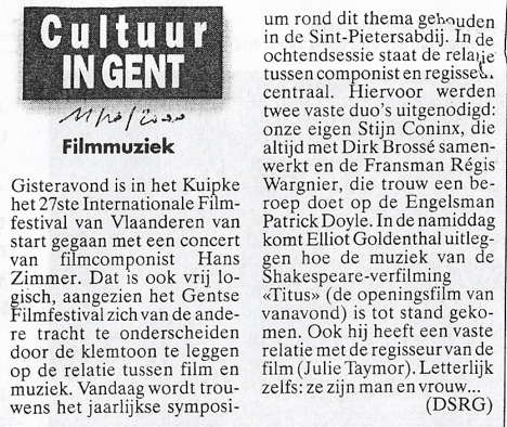 25 jaar geleden had Dirk Brossé (foto VRT) het over zijn samenwerking met regisseur Stijn Coninx… Dit delen: Klik om te delen op Facebook (Opent in een nieuw venster) Facebook Klik om te delen op X (Opent in een nieuw venster) X Klik om dit te e-mailen naar een vriend (Opent in een nieuw venster) E-mail Klik om af te drukken (Opent in een nieuw venster) Print Meer Klik om op LinkedIn te delen (Opent in een nieuw venster) LinkedIn Klik om op Pinterest te delen (Opent in een nieuw venster) Pinterest Vind-ik-leuk Aan het laden...