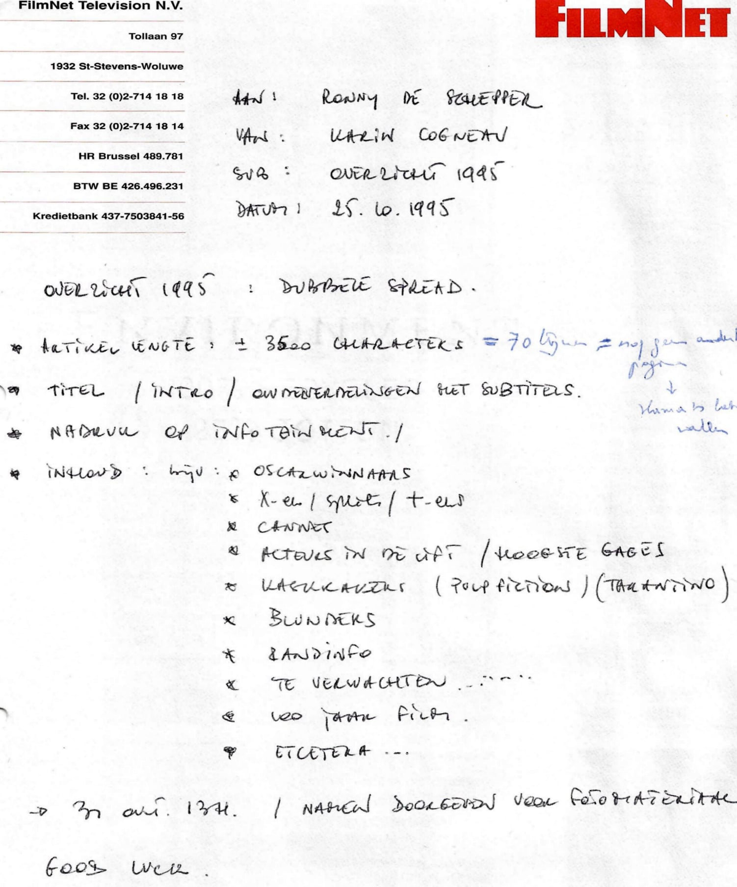 Het was niet altijd kommer en kwel dertig jaar geleden. Op basis van mijn artikels over film in Stepsmagazine was Karin Cogneau van Filmnet me op het spoor gekomen en ze liet me voor het maandblad een artikel schrijven. Toch heeft ook dit weer niet lang geduurd: Karin ging weg bij Filmnet en haar opvolger was mij minder goed gezind en zo eindigde de samenwerking nog voor het einde van ’t jaar.