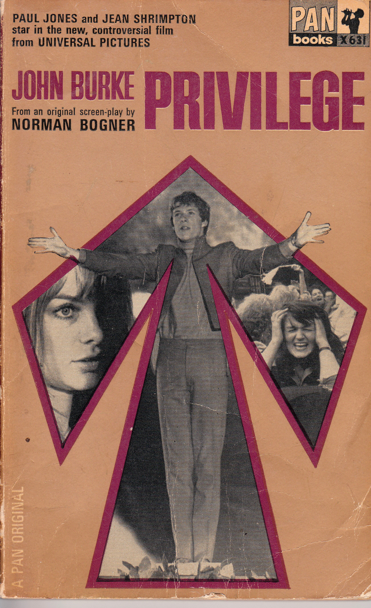 Maar goed, ik moest en zou dus dat singeltje hebben, maar niet alleen dat, ik wou ook de film zien (en dat is me gelukt, op de toenmalige BRT als ik me goed herinner) en ik heb me ook een pocketboekje aangeschaft met het verhaal van “Privilege”. Aangeschaft jawel, maar nooit gelezen. Misschien dat ik het nu wel eens ga doen, nu “Privilege” eindelijk op dvd is uitgebracht. Waarom dit zo lang heeft geduurd, legt Willy Magiels hieronder uit in een bijdrage die hij schreef voor “Film”, het blad waarvan hij destijds (2009) de hoofdredacteur was.