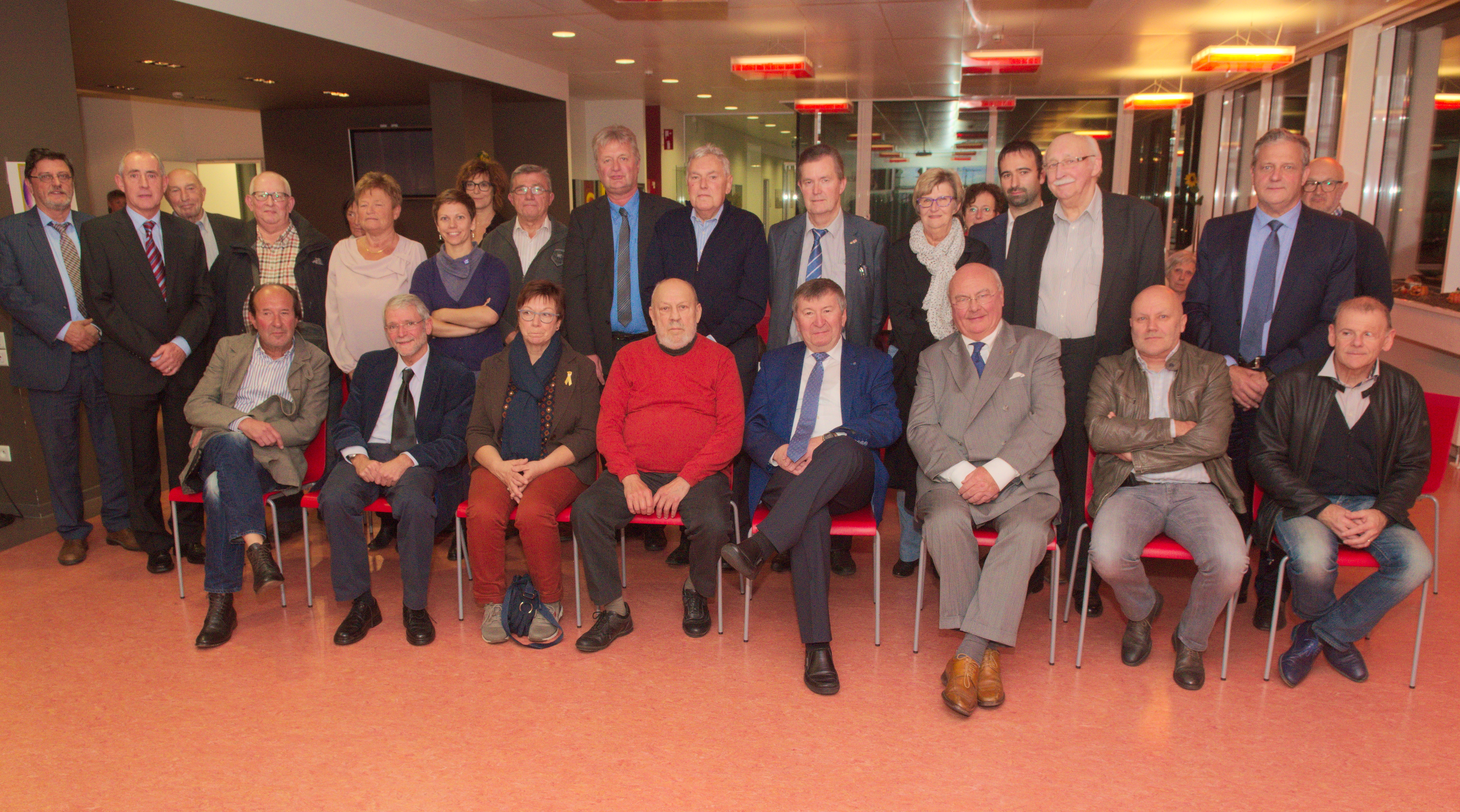 Op onderstaande foto ziet men de genodigden, met op de eerste rij v.l.n.r. Noël Van Cauwenbergh, Bert Duellaert, René Stroobant en echtgenote, burgemeester Luc De Ryck, gedeputeerde Jozef Dauwe, Erik Vertenten en Marc Casier.