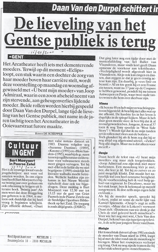 Daan Van den Durpel: “De hardste les in het leven is dagelijks in de spiegel kijken. Maar ik heb daar geen moeite mee: ik ben blij dat ik al zo oud geworden ben.” (Foto Johan Martens) Dit delen: Klik om te delen op Facebook (Opent in een nieuw venster) Facebook Klik om te delen op X (Opent in een nieuw venster) X Klik om dit te e-mailen naar een vriend (Opent in een nieuw venster) E-mail Klik om af te drukken (Opent in een nieuw venster) Print Meer Klik om op LinkedIn te delen (Opent in een nieuw venster) LinkedIn Klik om op Pinterest te delen (Opent in een nieuw venster) Pinterest Vind-ik-leuk Aan het laden...