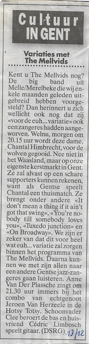 Variaties met The Mellvids (foto Johan Martens) Dit delen: Klik om te delen op Facebook (Opent in een nieuw venster) Facebook Klik om te delen op X (Opent in een nieuw venster) X Klik om dit te e-mailen naar een vriend (Opent in een nieuw venster) E-mail Klik om af te drukken (Opent in een nieuw venster) Print Meer Klik om op LinkedIn te delen (Opent in een nieuw venster) LinkedIn Klik om op Pinterest te delen (Opent in een nieuw venster) Pinterest Vind-ik-leuk Aan het laden...