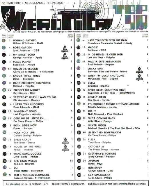 Vijftig jaar geleden stond “Nothing rhymed” van Gilbert O’Sullivan op nr.1 van de top veertig van Radio Veronica.