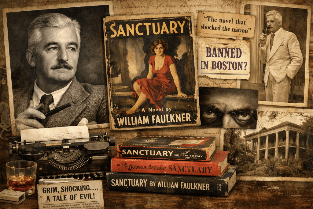Het is een feit dat James Hadley Chase’s lugubere roman No Orchids for Miss Blandish veel dank verschuldigd was aan Sanctuary vanwege zijn verhaallijn.