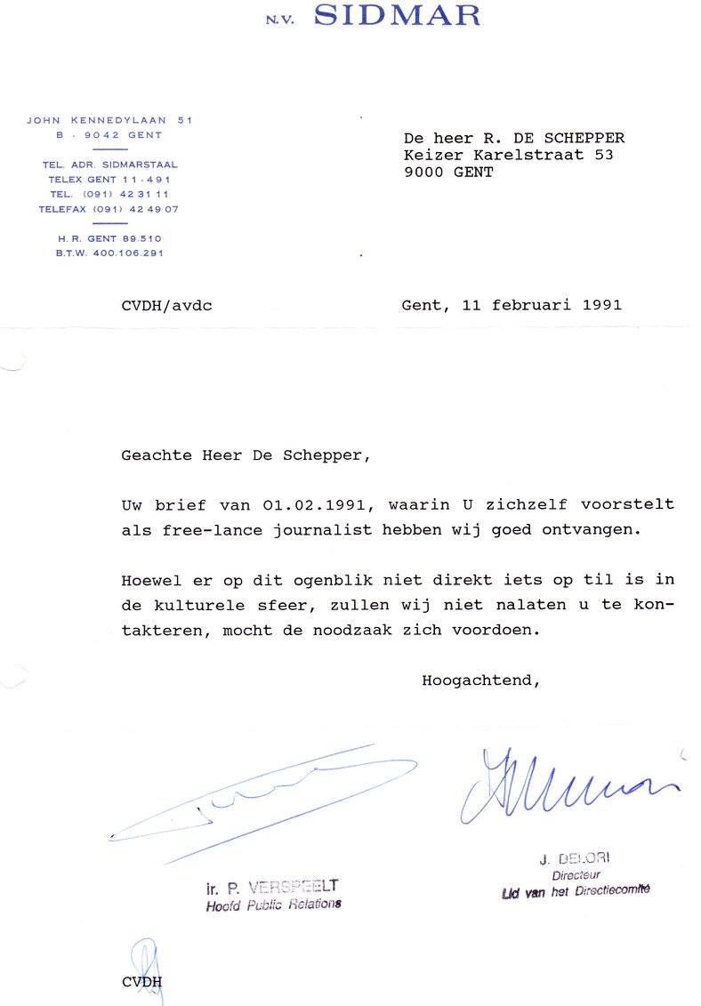 35 jaar geleden reageerde Sidmar zogezegd positief op mijn sollicitatie, maar uiteraard heb ik er nooit meer iets van gehoord…