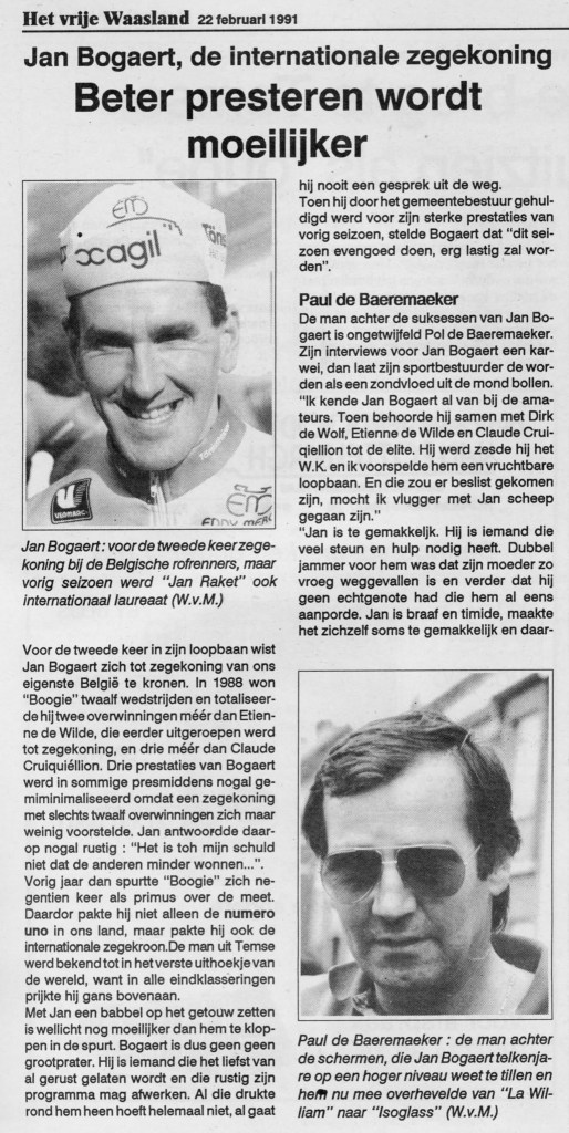 Jan Bogaert, die het voorbije seizoen internationaal zegekoning werd, blikt in Het Vrije Waasland vooruit naar het nieuwe seizoen (1991).