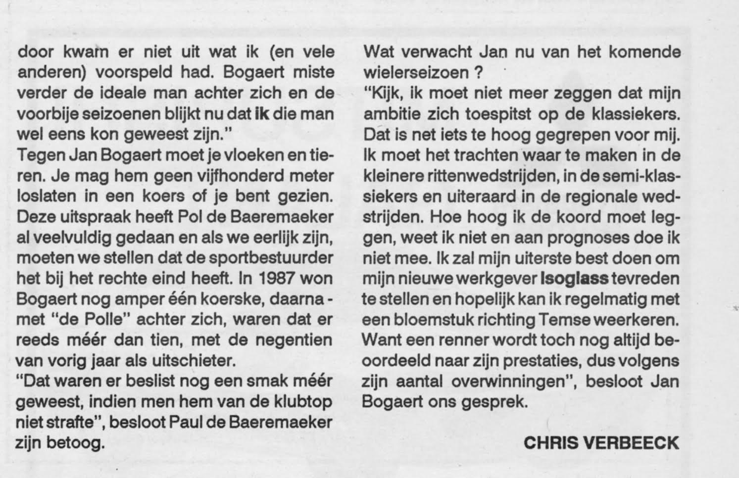 Jan Bogaert, die het voorbije seizoen internationaal zegekoning werd, blikt in Het Vrije Waasland vooruit naar het nieuwe seizoen (1991).