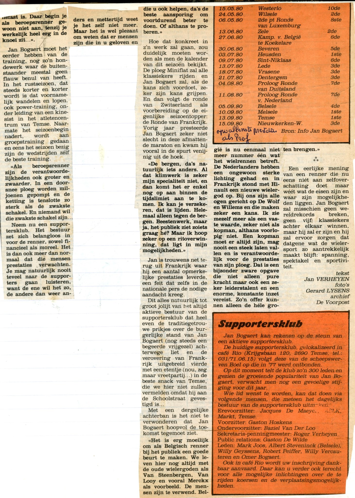 45 jaar geleden schreef niemand minder dan Jan Verheyen in De Voorpost een lang stuk over zijn (mits enige overdrijving) buurjongen Jan Bogaert. Ze woonden immers allebei in de buurt van de Tuinwijk (Korea). Bogaert richting Potaarde, Verheyen richting Hollebeek.