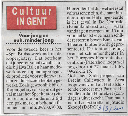 Jong en minder jong kon 25 jaar geleden terecht in het Europees Figurentheatercentrum (foto: Beeldbank van Stad Gent) voor “De maan schildert sterren boven Bursa”.