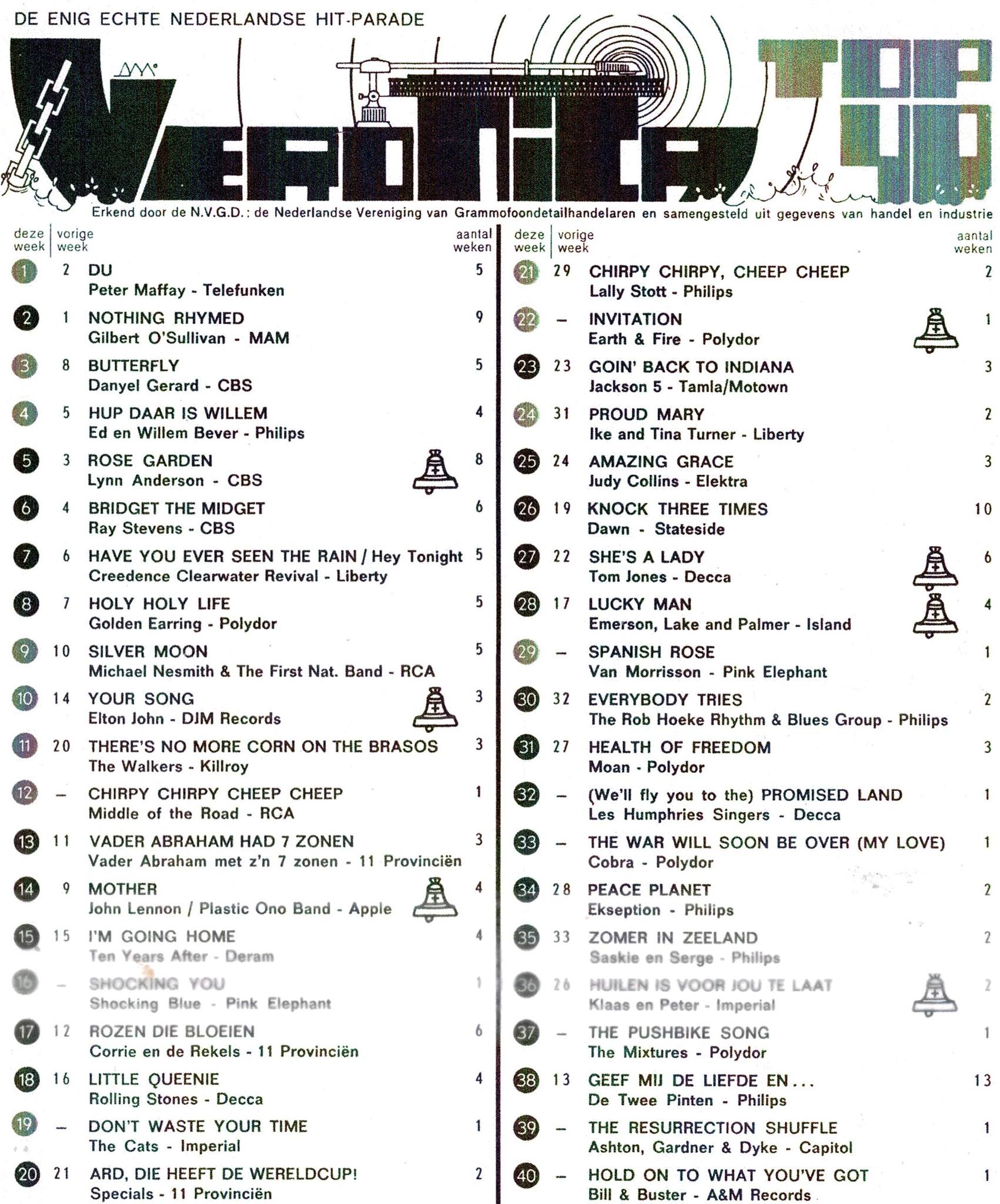 De plaat werd in 1971 opnieuw uitgebracht en stond in Nederland vijf weken en in België vier weken op de nummer 1-positie in de hitlijsten.
