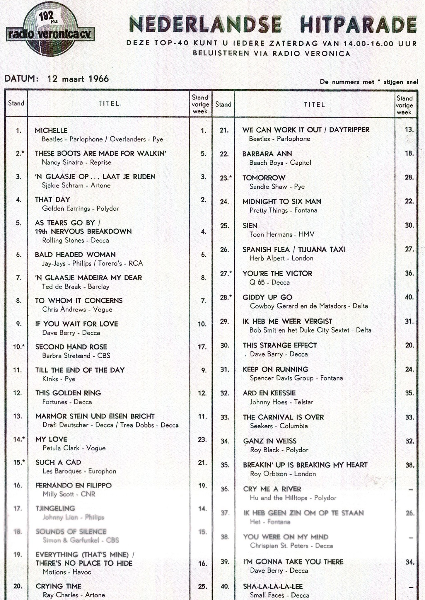 Zestig jaar geleden stond “Michelle” van The Beatles voor de vierde week op de hoogste plaats van de Veronica Top Veertig…